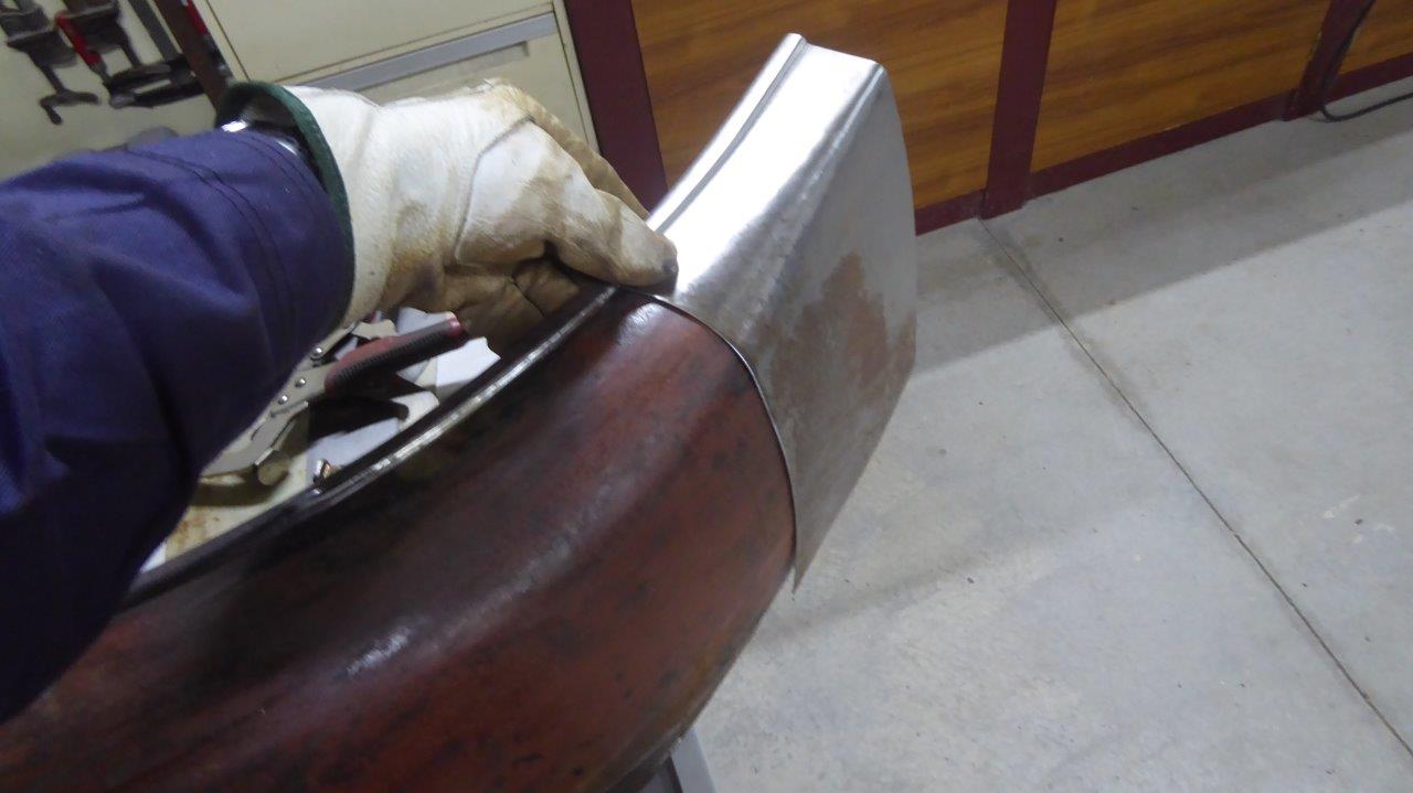 Hammered what I could between the clamps before switching to a piece of flat stock that I had shaped to fit the radius of the wheel arch edge repairs earlier. Just thought this could work in this type of edge flange that has the step bead as well. This a bit different from what I have seen before.