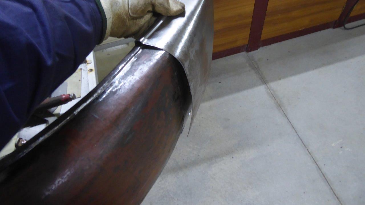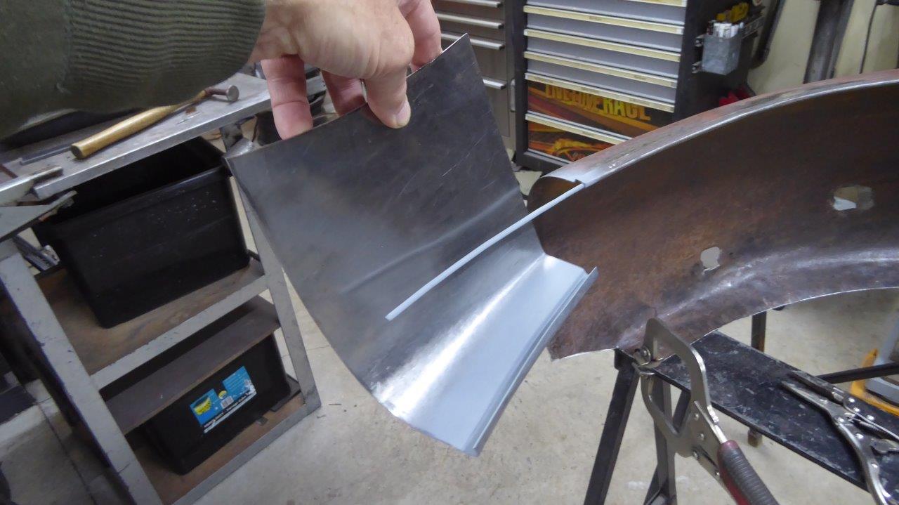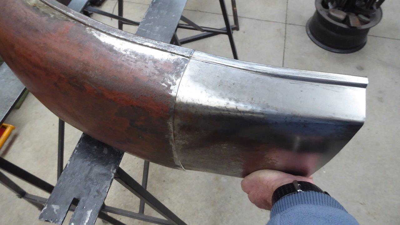 When I slide it down to where it going to get welded in you can see how much I have to change the original guard to blend with it.
