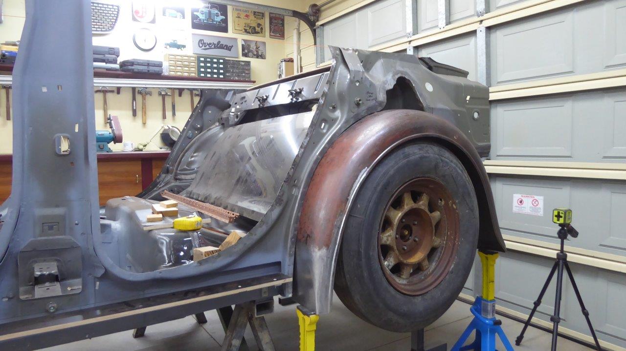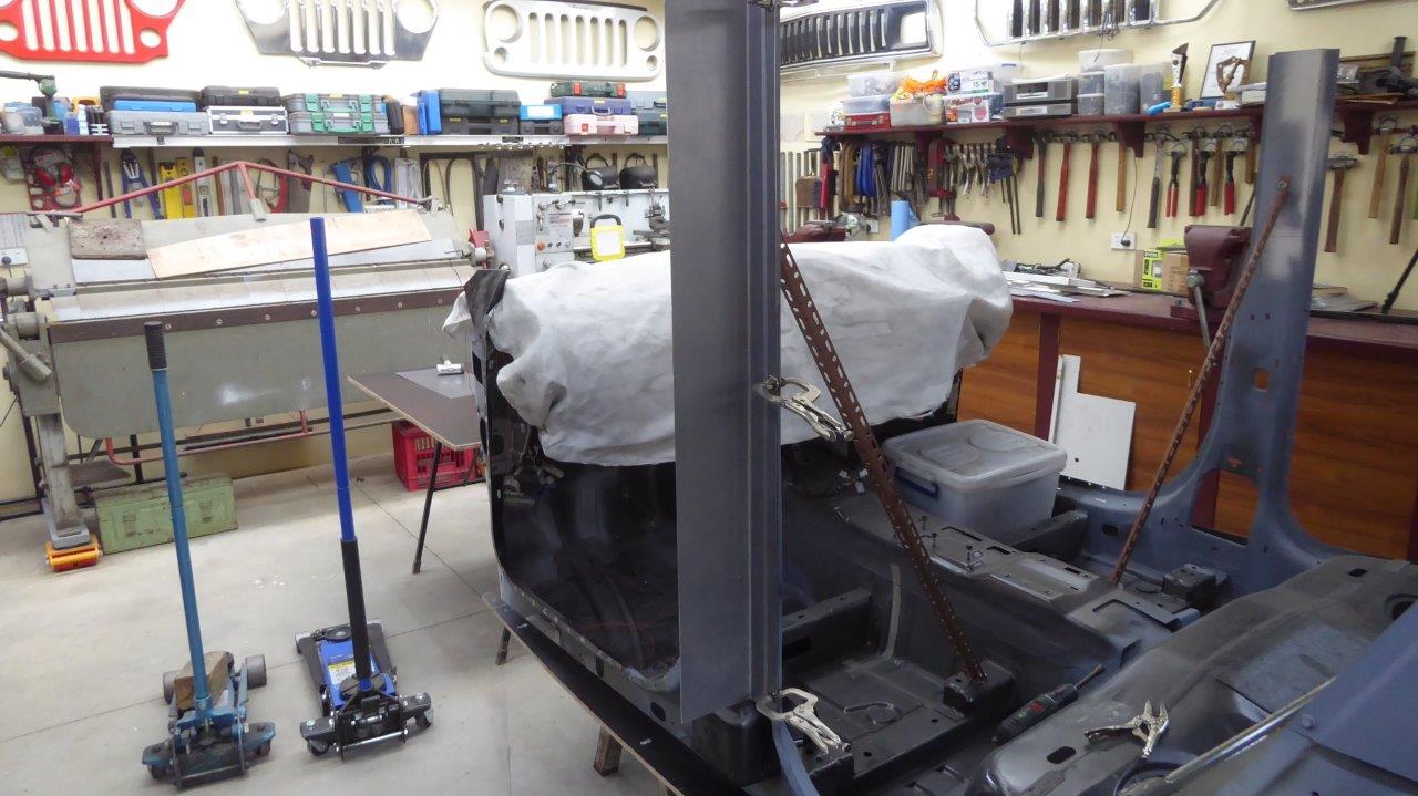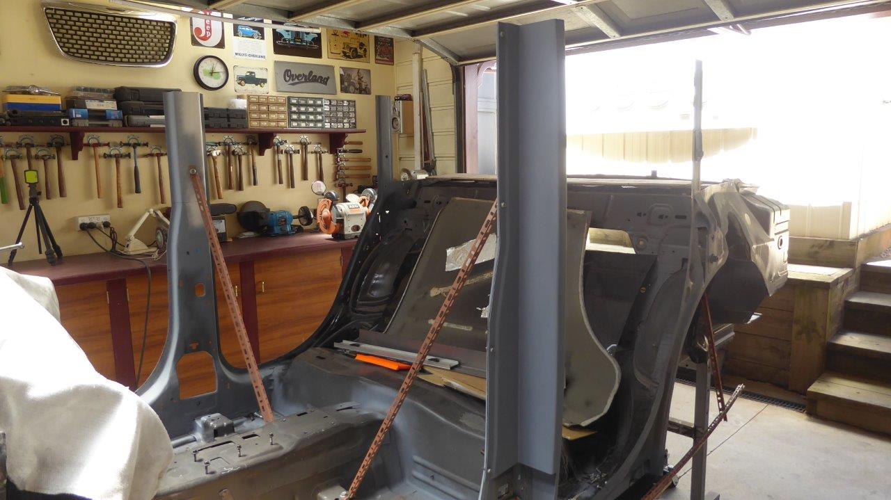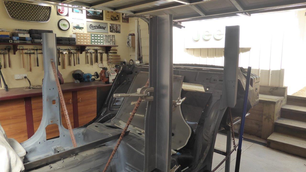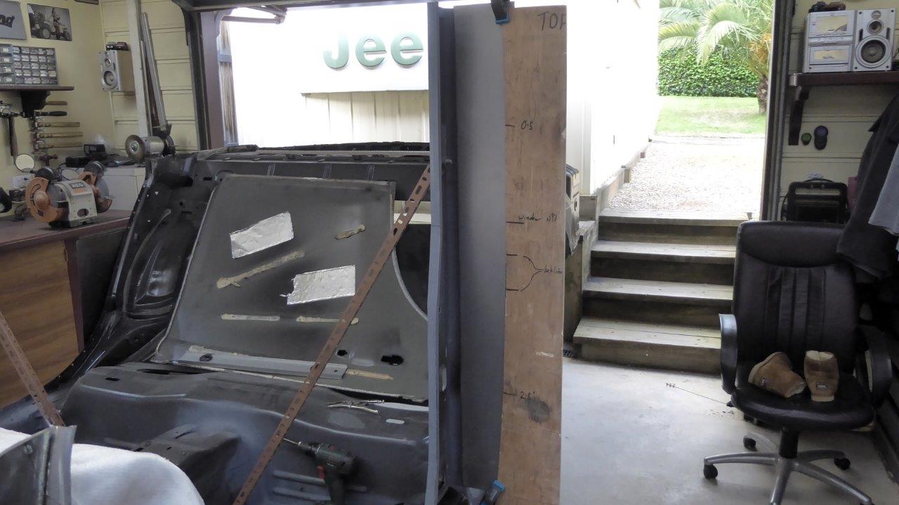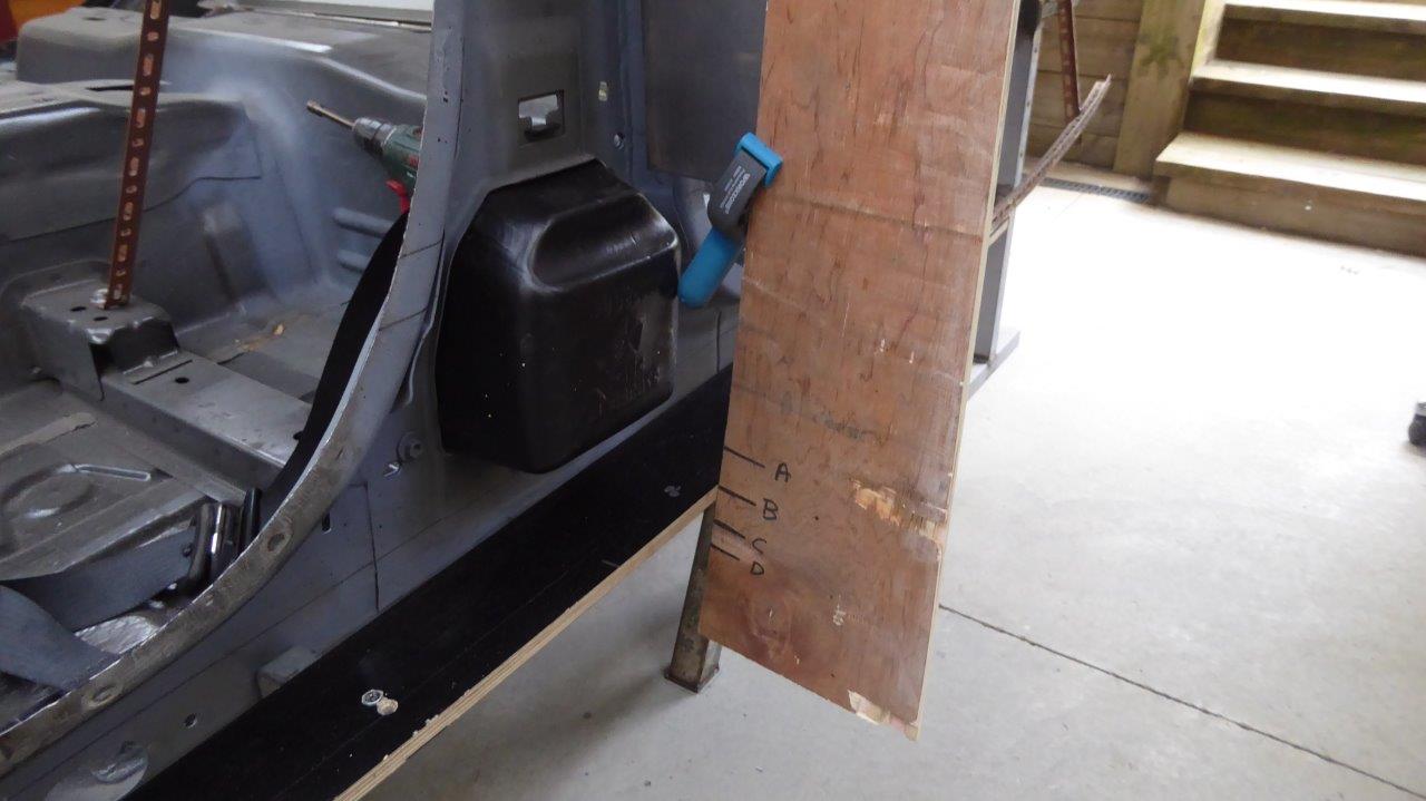Each pillar has been mapped out on the template on where it needs to sit against the horizontal template already mounted at bottom of the future door sill. This is because the window sill is angled at 2.5°, up from the Willys original 0.5°. This is also the slope of the top of the doors as the window height is the same along the car.
