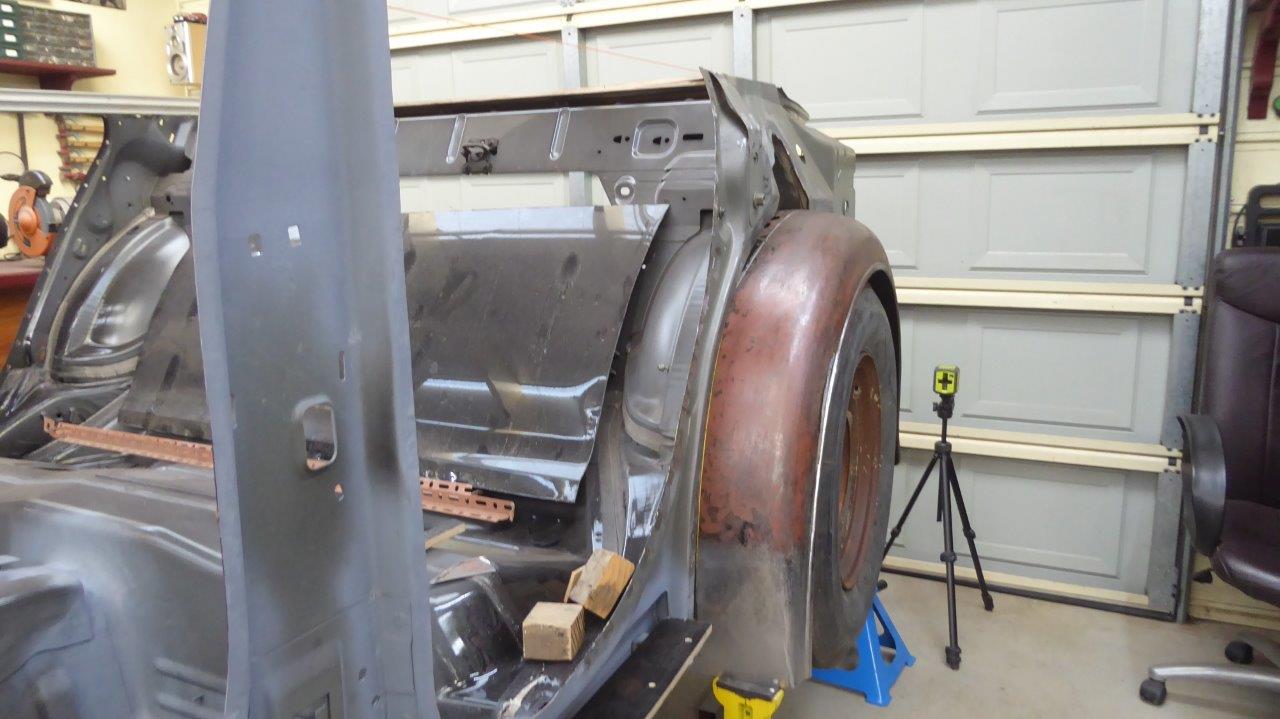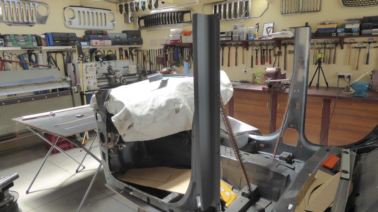 The next half was then made the same way. The wider lower section is what was factory on the donor car so the seat belt reel can be recessed into the bottom of it. You can see the hole it fits into on the opposite side. The step for the pinch weld seal can be seen a bit clearer here.