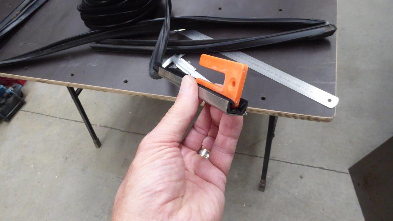 By the time all that was added up it didn't leave enough strength in the centre section for where the door strikers mount. So I thought about what could be made narrower. I found some run channel that was much shallower, so bought enough to do all fours doors. I don't want to build it to something that might not be in production later on. I folded up a test piece to make sure I could produce the steel channel that the glass run channel sits in. In the end I only have to widen each window frame 5mm-3/16" extra.