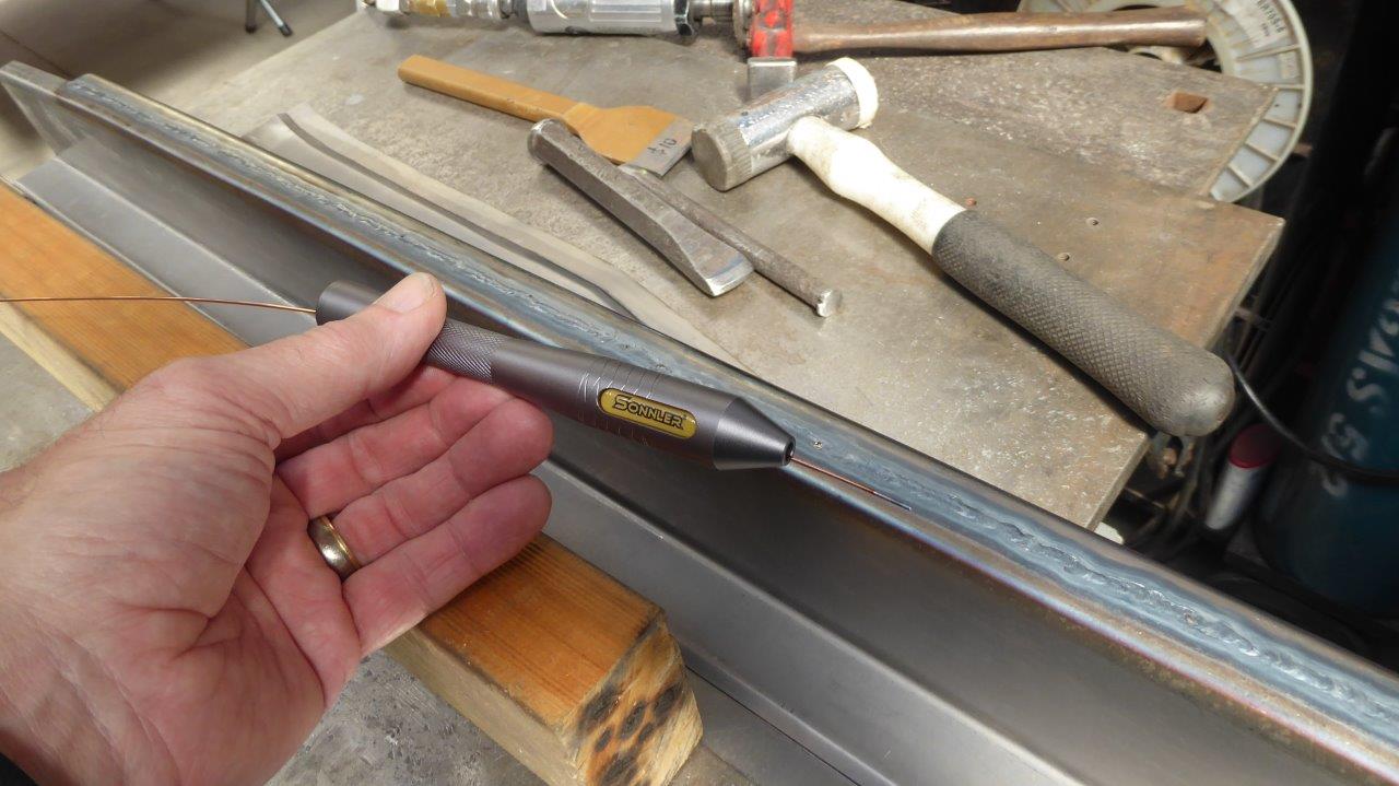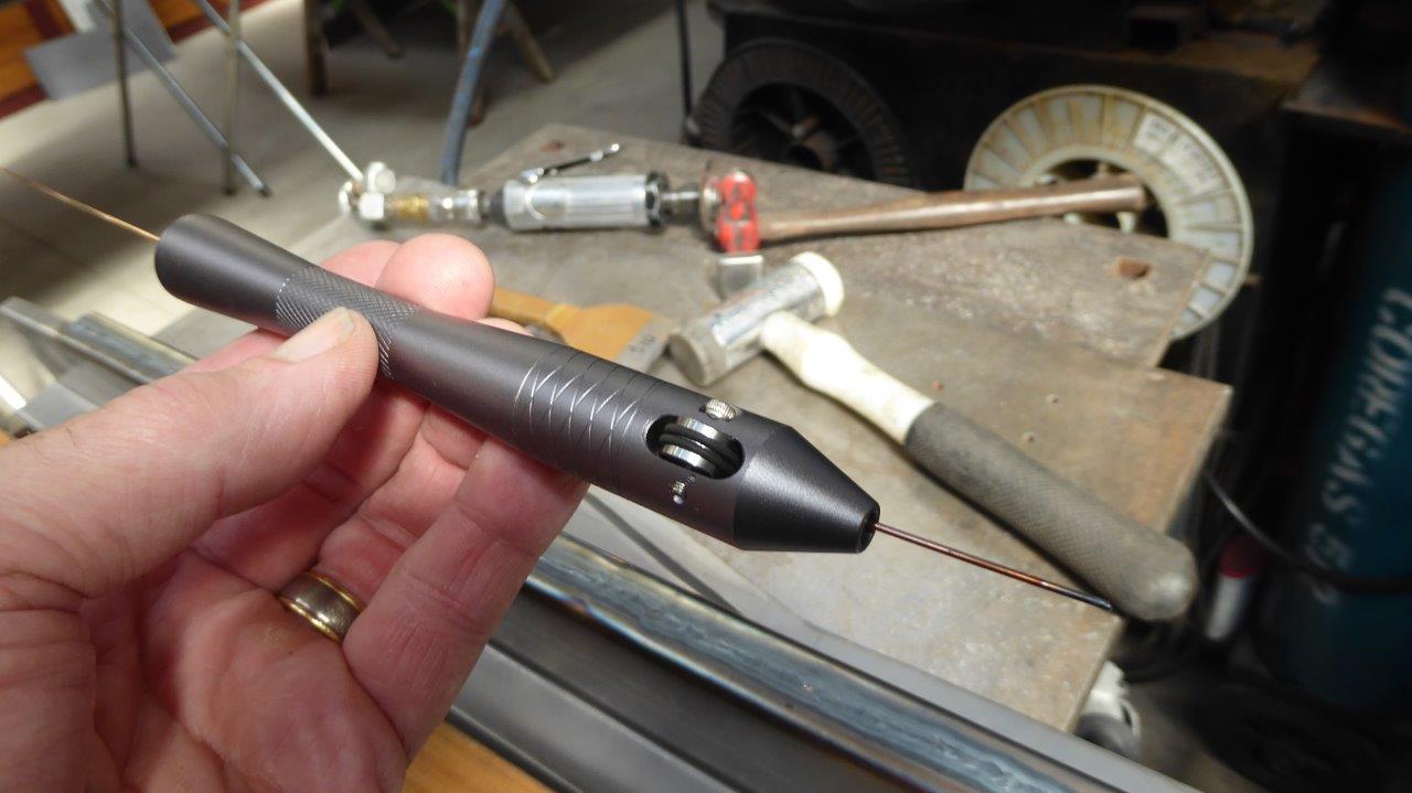 I TIG welded the two halves together making only a single stop to reposition myself. I tried out a TIG pen wire feeder for the first time. Was surprised how well it worked as my XXL gloved hands have trouble feeding the 1.2mm-0.045 MIG wire into the weld pool. I looked for an all metal one of decent size and this was the Sonnler brand I bought off AliExpress.