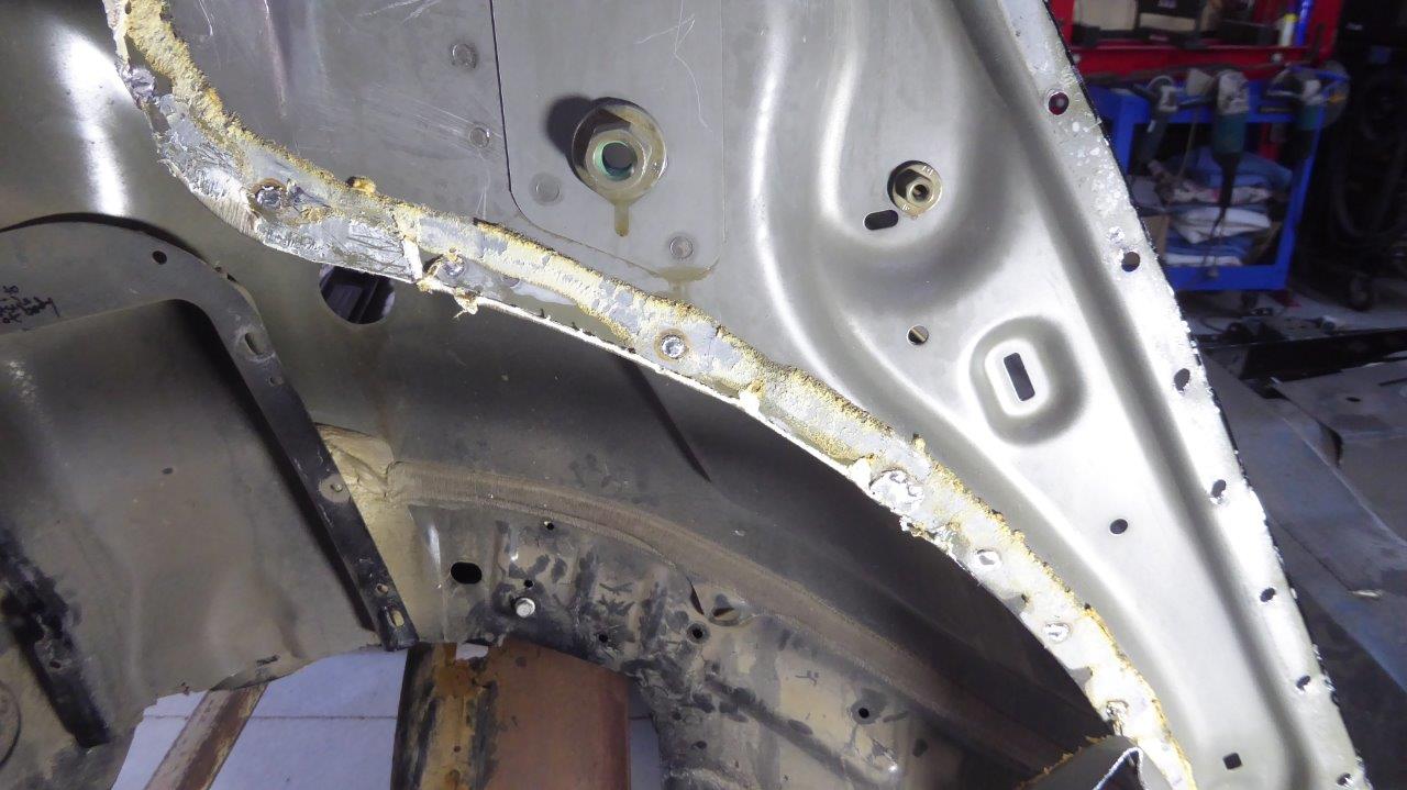 On to the other side. The part that is painted body colour actually really thin at only 0.8mm or 21 gauge and is only spot welded to the under lying piece around the perimeter and a few spots near the hinges.