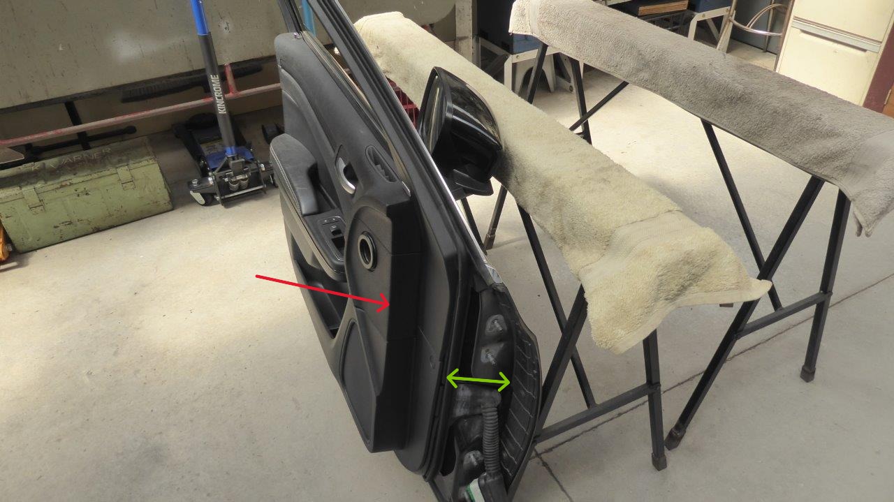 You can see just how thick these doors are, but the metal frame is only between the green arrows. I need to have the metal frame as close to the dash, where the red arrow is pointing, as possible to narrow up the front of the cab. So everything forward of the red arrow will not be used and the metal frame needs to replace the plastic door panel.