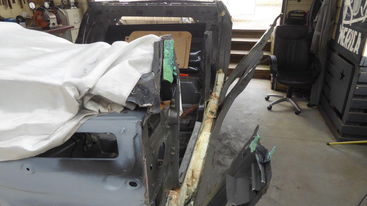 One of the problems I face is how much the B pillars angle back from 90 degrees compared to the Willys doors. Just like the window tracks, this has to be angled forward to vertical, as leaning the window frame backwards at the B pillar was never done back then. A customising trick was to actually lean them forwards, so this would be a step in the wrong direction leaving them like this. I was hoping just to angle the top half behind the window frame vertically, but then the seat belt inertia reel mount would be at the wrong angle.