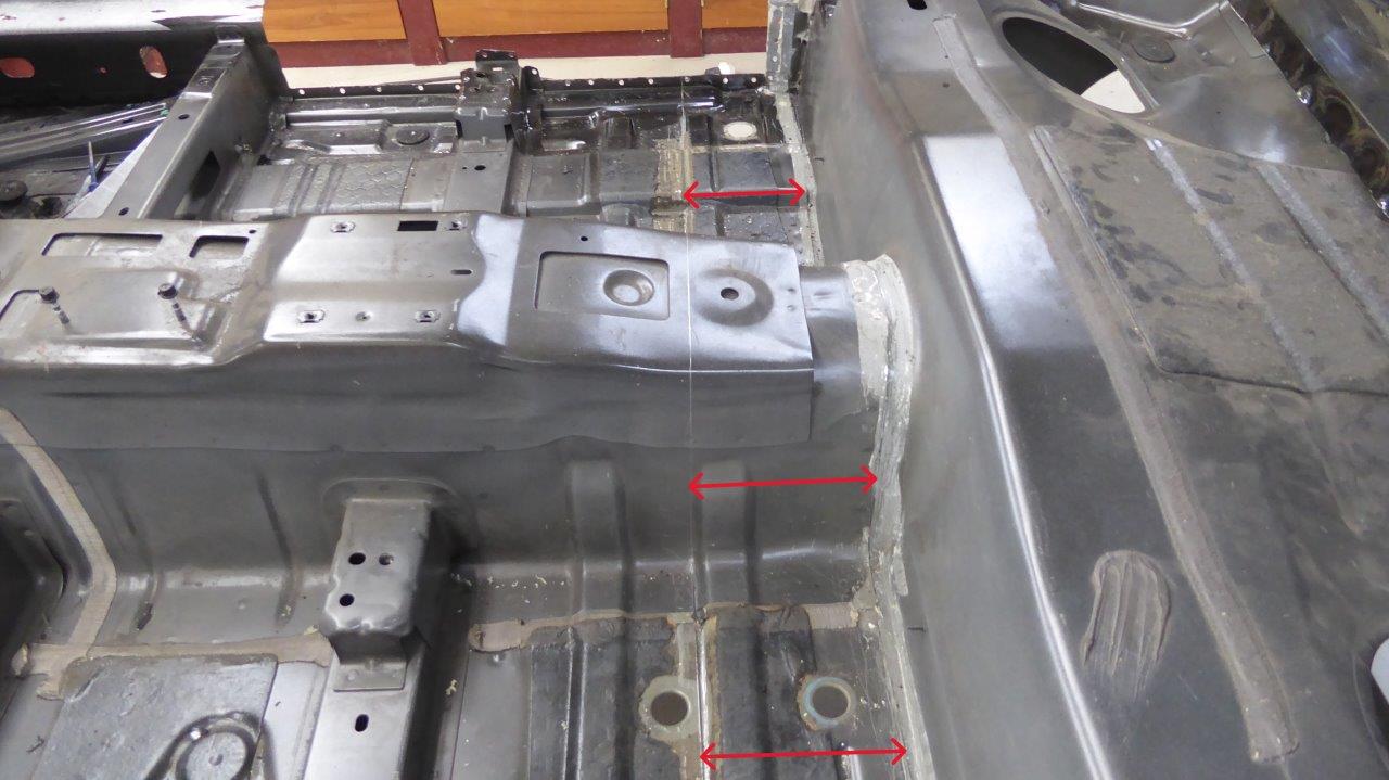 Notice the section cut out in front of the B pillar that is arrowed. That is 70mm-2.75" missing.