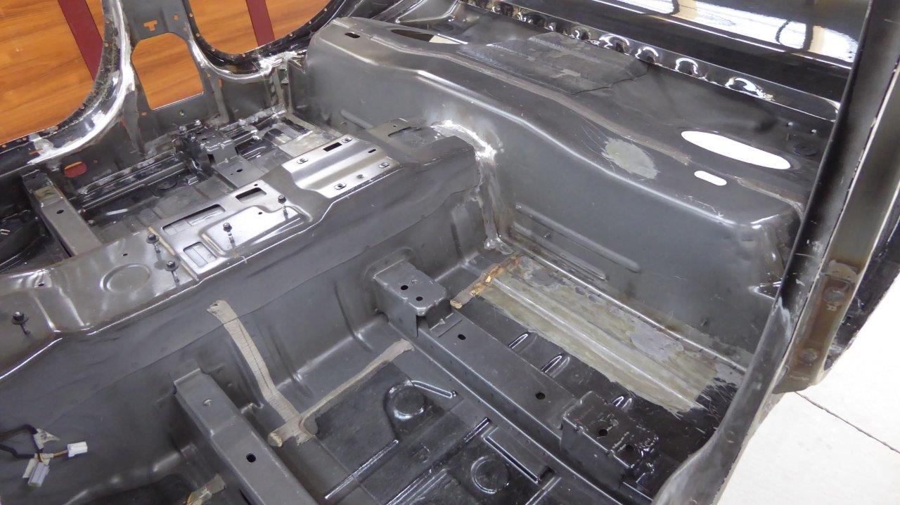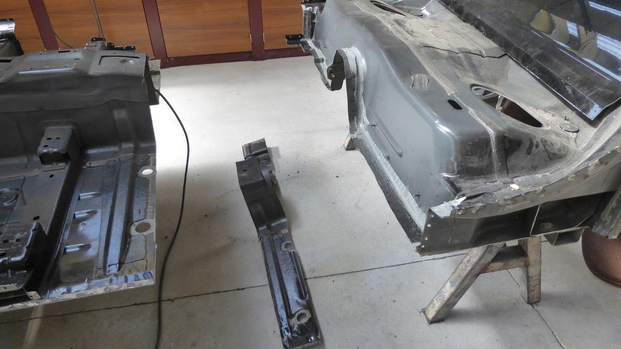 I used all the drilled out spot weld holes to plug weld the mounts back in, plus added extra for the area towards the rear. This is now ready for when I later start building the engine mounts after the Willys frame is in place.