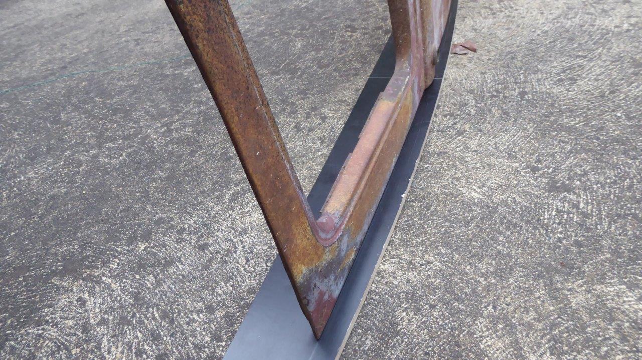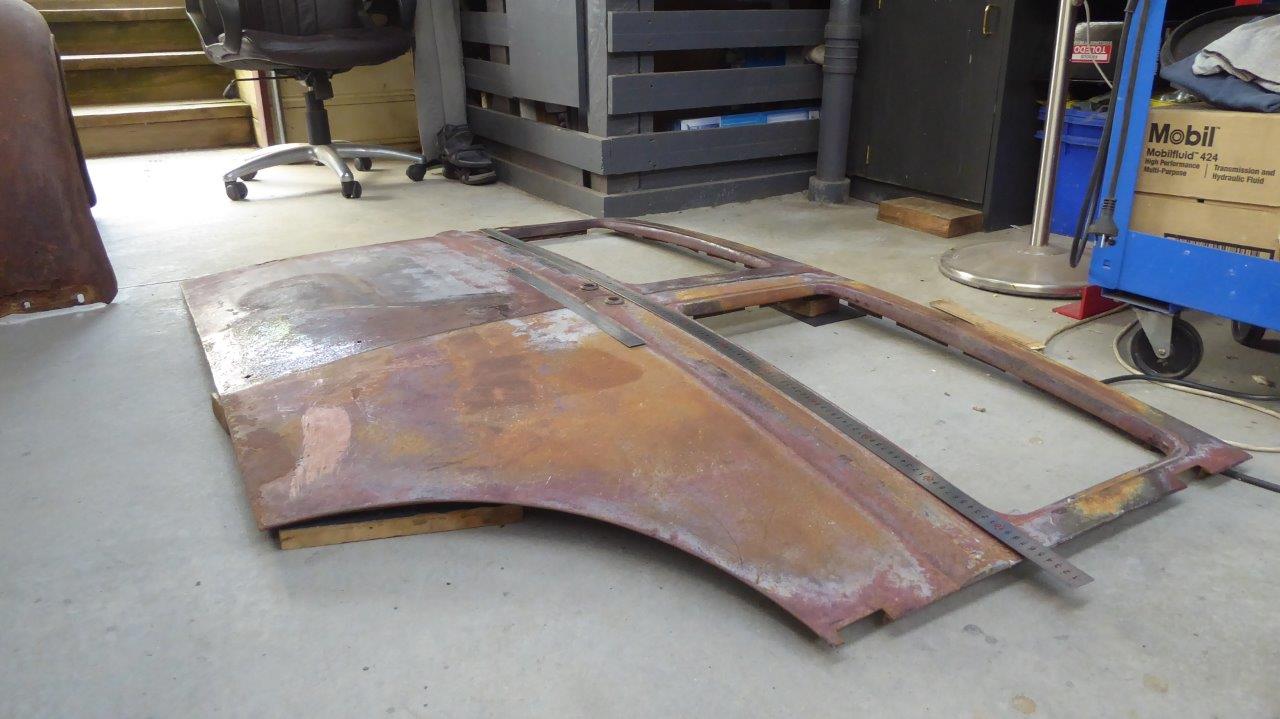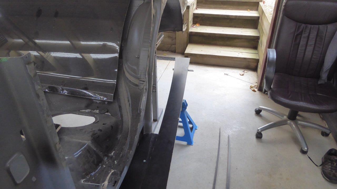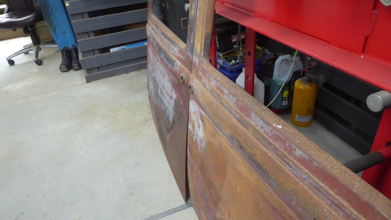 I made some templates, both positive and negative ones, of the vertical door profile to help make the door frames etc easier. Also to make sure the shape stayed consistent down the length of the car. So I cut them using the front door A pillar steel plate that the hinges screw too as a template. Then I discovered that the door plate to take the other side of the same hinge, was different! Why the factory stamped these out differently, even though they are right next to each other, is beyond me. You might be able to make out the pencil line showing that the steeper radius of the door compared to the A pillar.