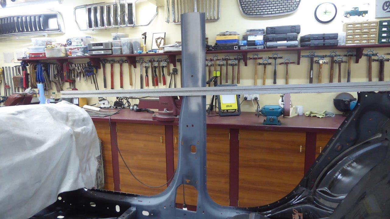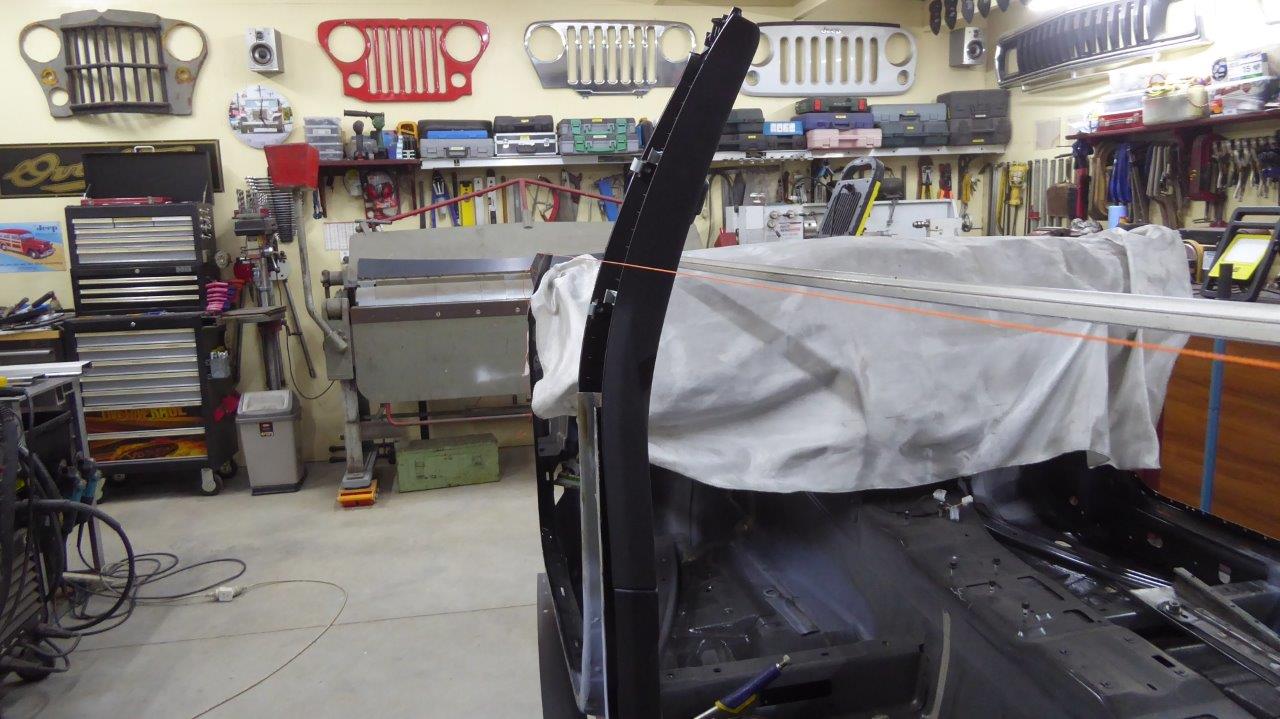 Back to working on the upper B pillar. Look how much the donor Chrysler leaned inwards! You can see why I chose to cut the B pillar off where I did, just before the bend. I'm still hoping I can use the plastic interior trim throughout right up to the window sill line which is where the orange string is.