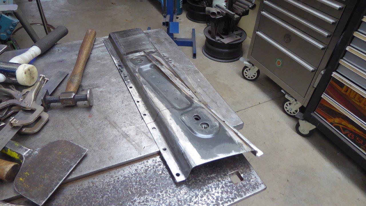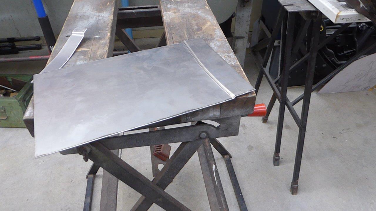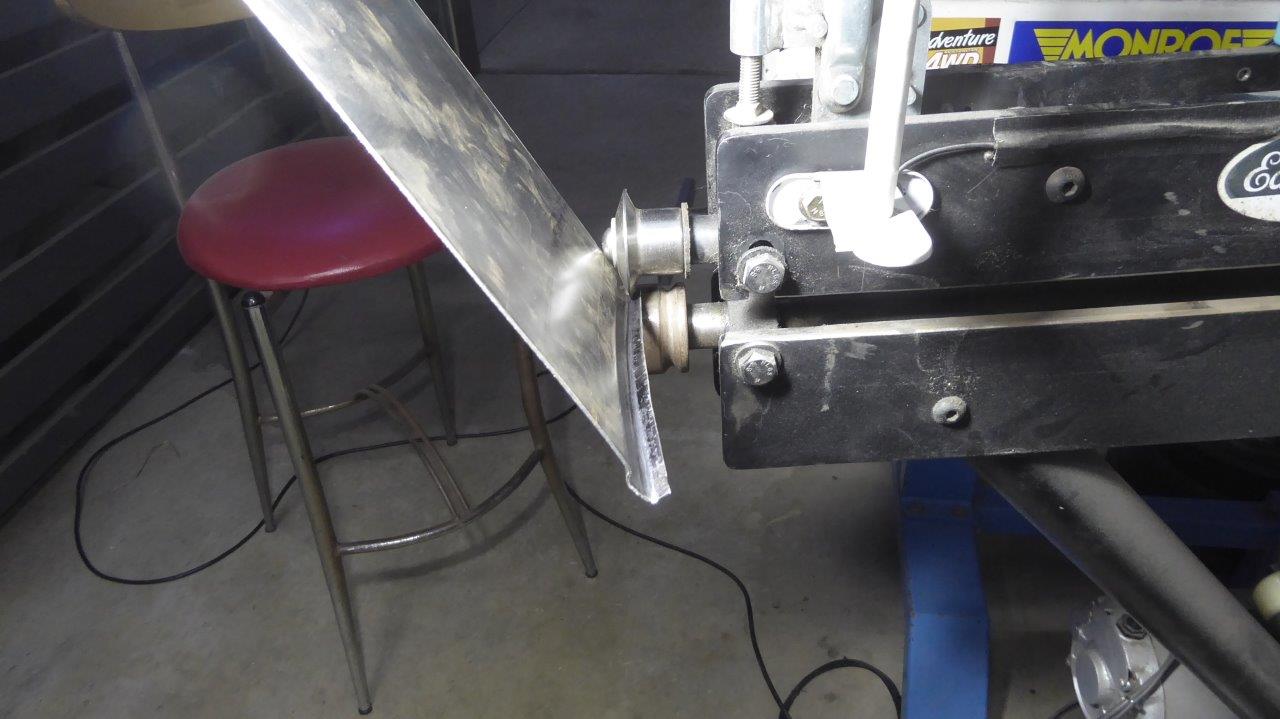 I am making the new piece big enough to replace the rusted section as well as the extra length needed to account for sitting higher up in the body. I used a step die in my bead roller the same height and offset as the edge bead. This just gives me the first bit of the edge profile.